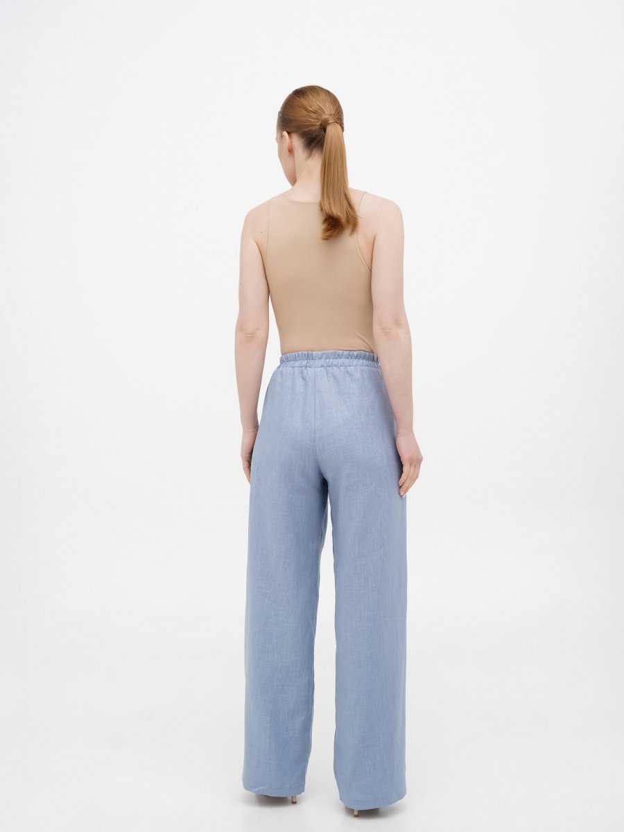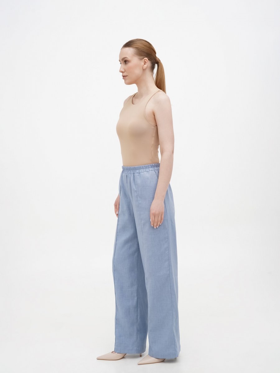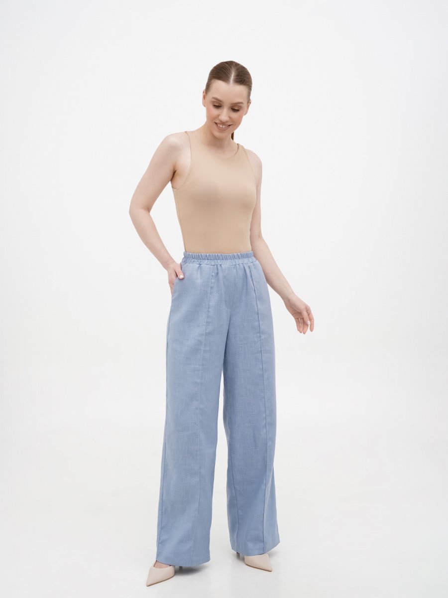 Брюки голубой лен на резинке