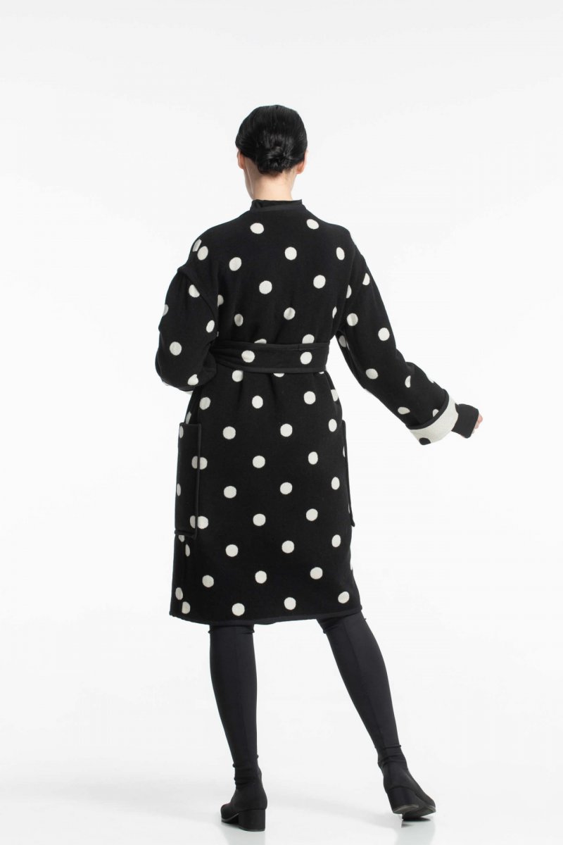 Принт "polka dot" очень популярный уже долгие годы и не сдает свои позиции в мире моды. Однотонный "горох" на черном или белом фоне смотрится интересно и стильно, дополняя женственный наряд. Вариантов сочетаний может быть множество: в тандеме с изделиями в клеточку, в полоску, в ансамбле с ярким "горошком" или просто с однотонной одеждой. Наличие пояса дает возможность создать приталенный силуэт, а большие накладные карманы практичны в использовании. Яркий и необычный предмет верхнего гардероба скрасит офисный look или прогулку в стиле casual.