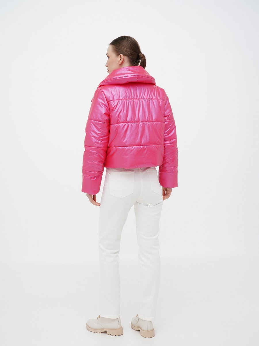 Короткая розовая куртка с большим воротником