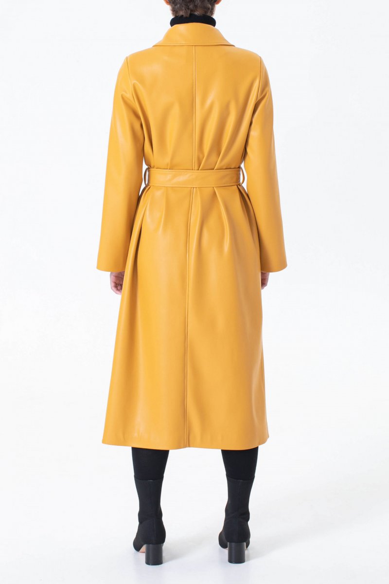 Модный желтый плащ из эко-кожи