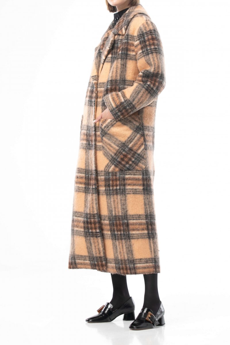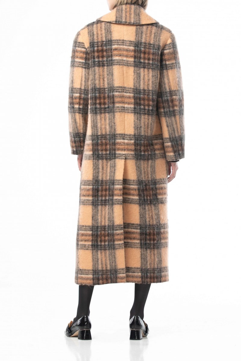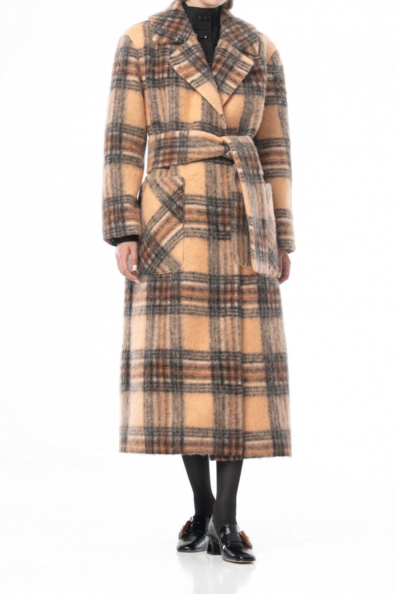 Шерстяное пальто в клетку бежево-коричневого цвета