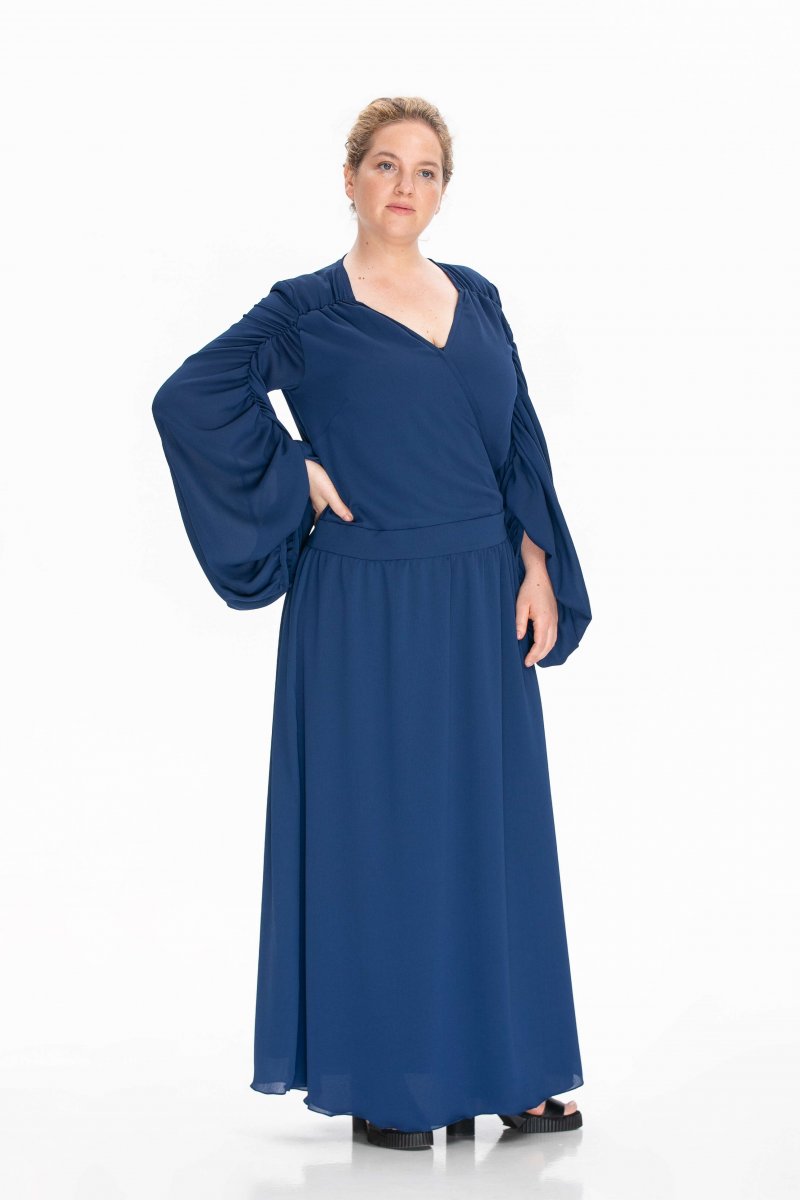 Синее вечернее шифоновое платье в пол PLUS SIZE
