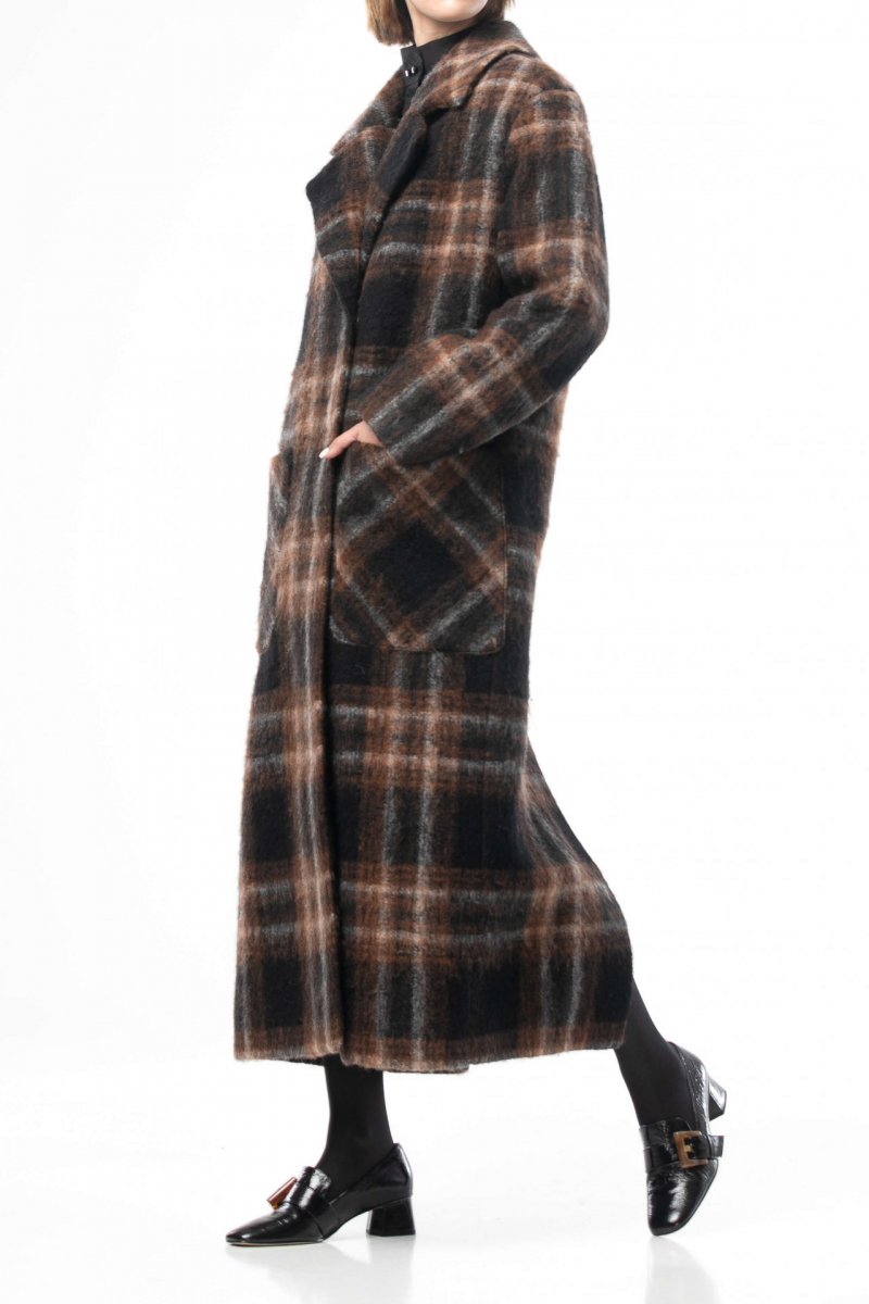 Чорне вовняне пальто в клітинку шоколадно-горіхового кольору