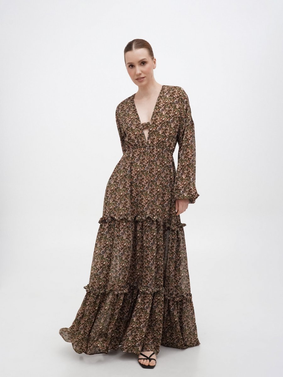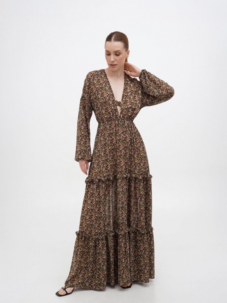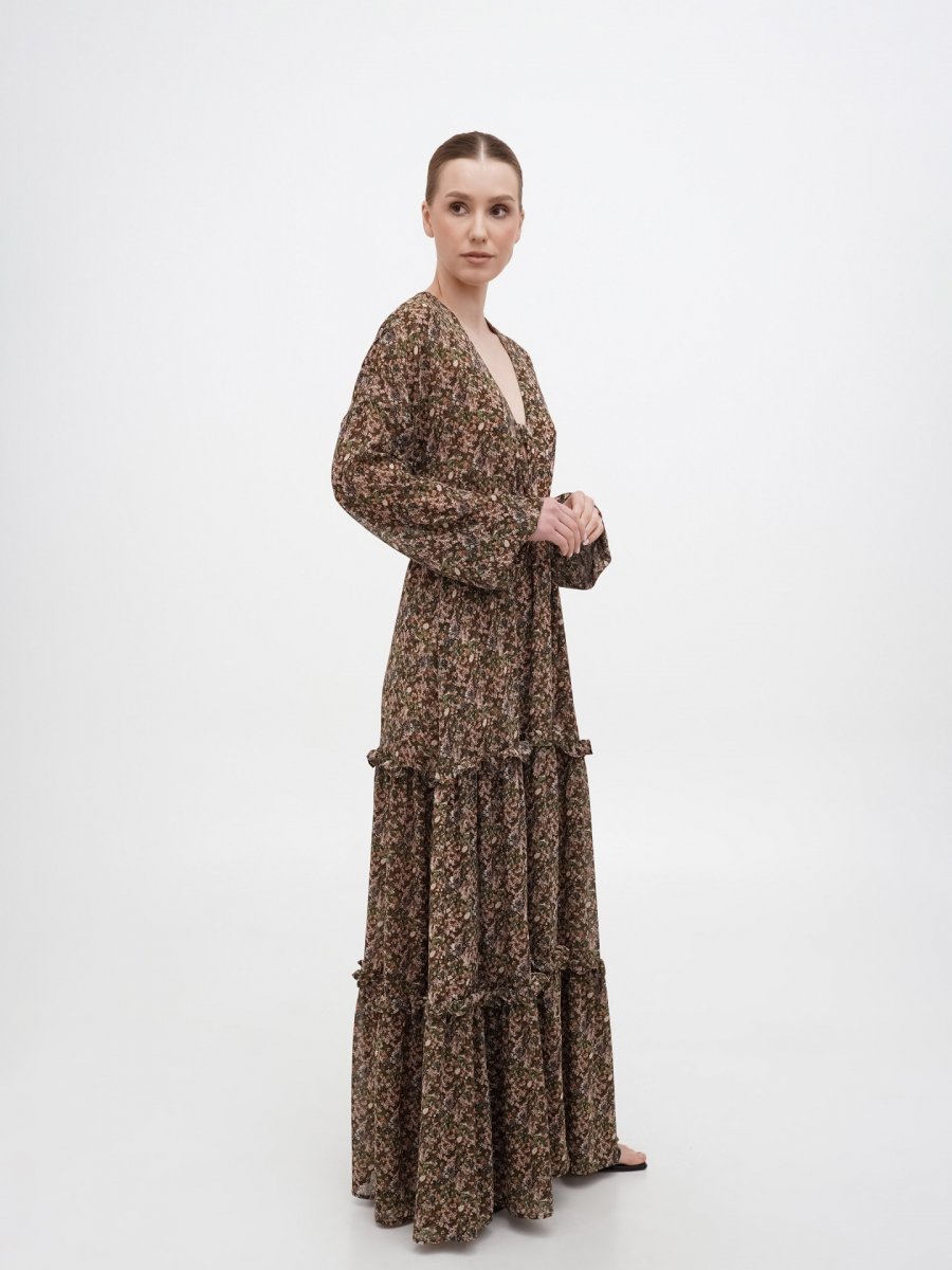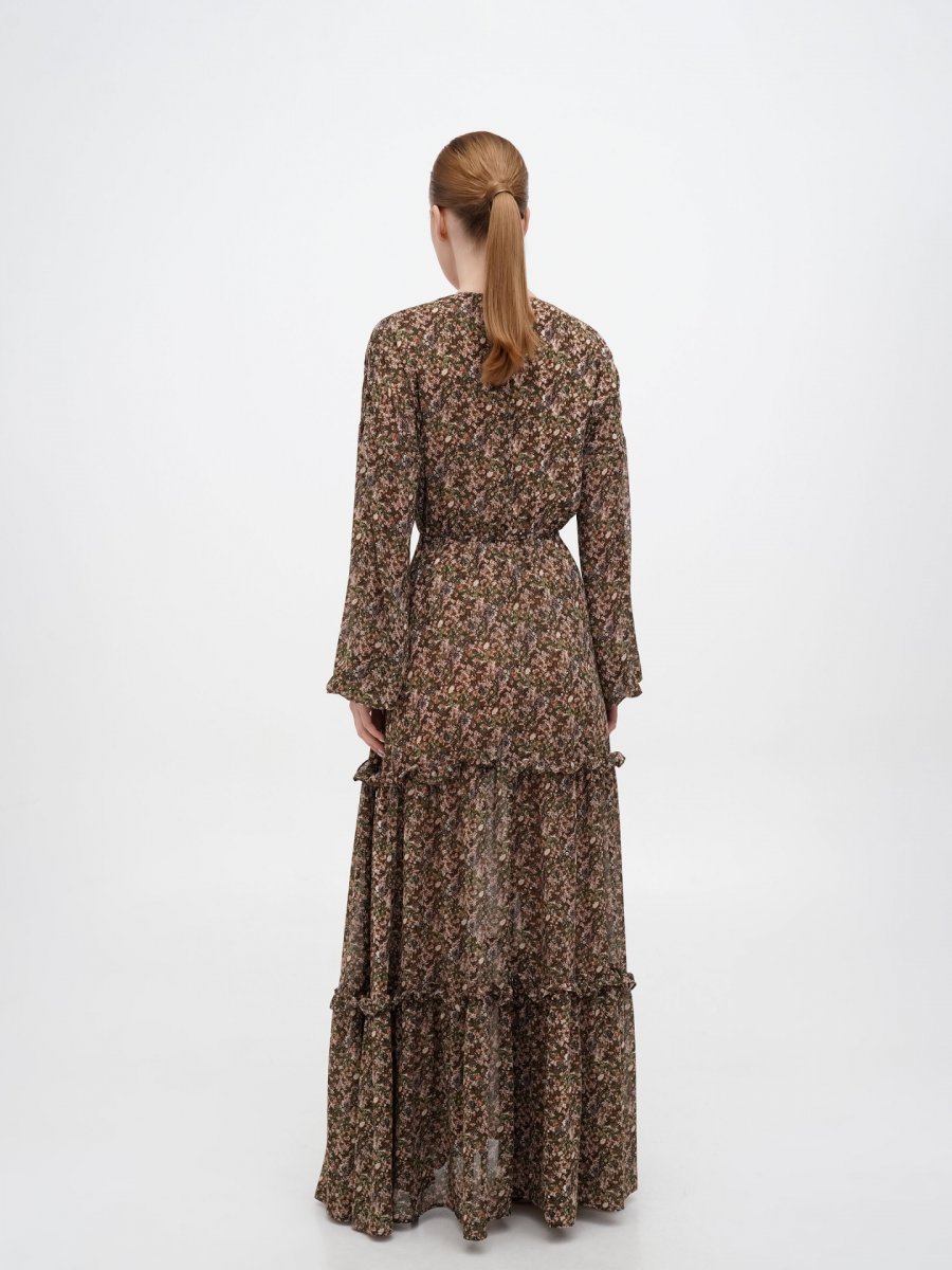 Сукня хакі з легкого шифону в дрібний квітковий принт