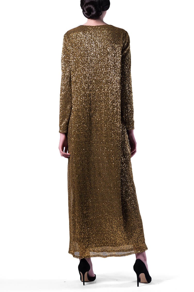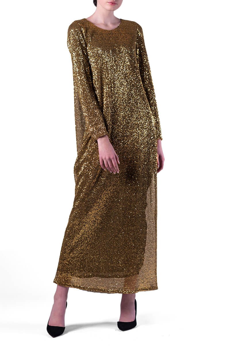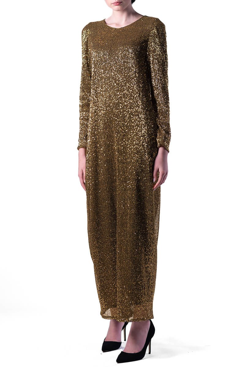 Золота сукня в паєтки складного крою