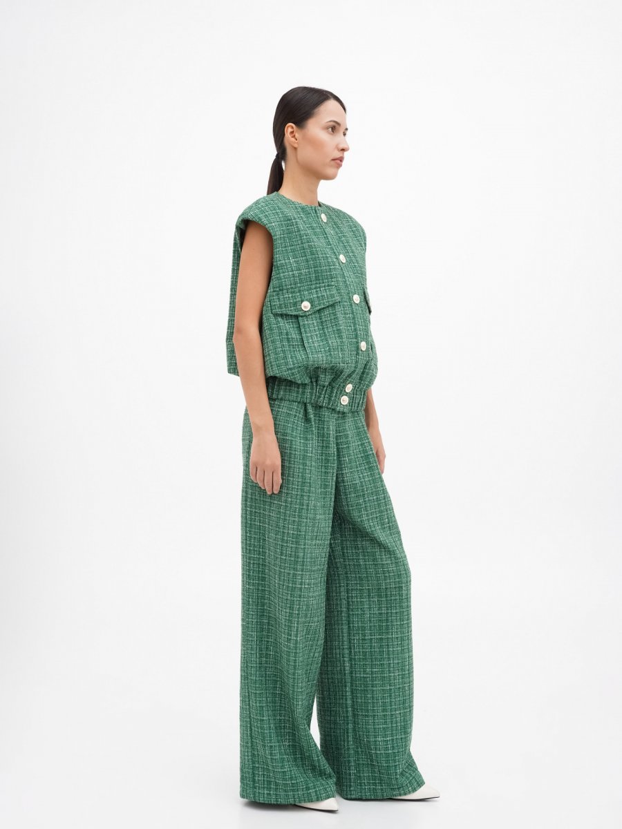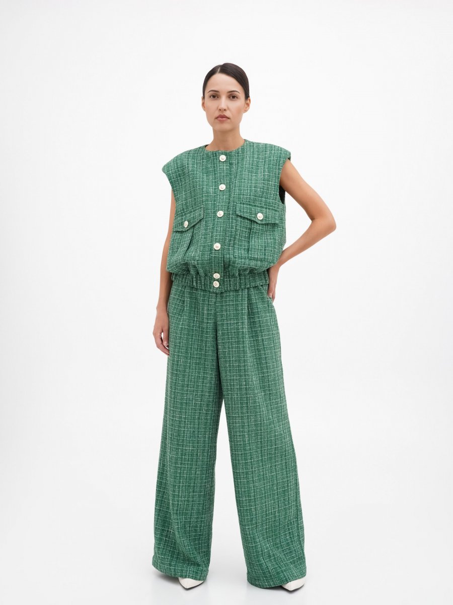 Зеленые твидовые брюки палаццо